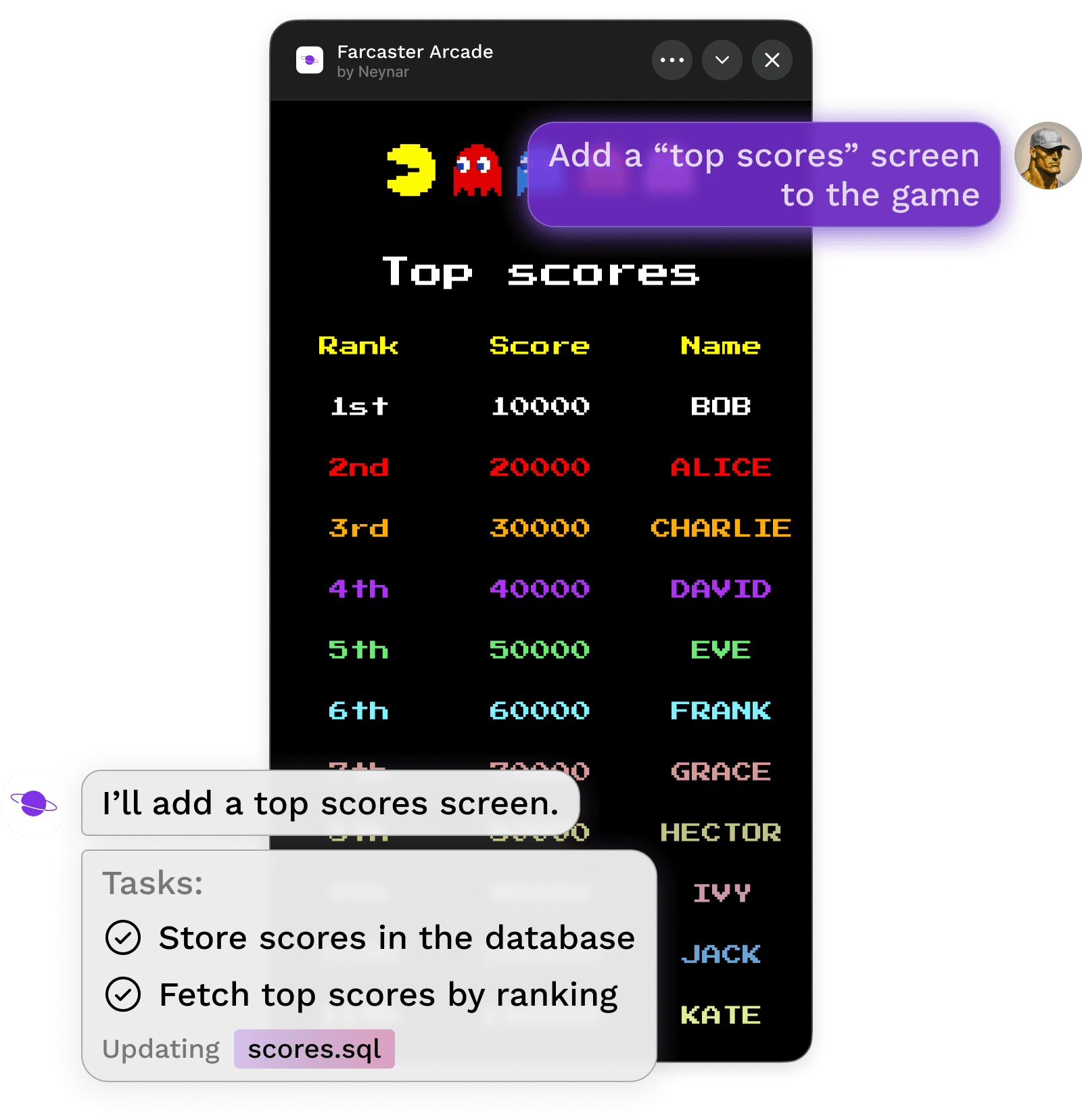 Build Farcaster mini apps by describing what you want. The app is generated from conversation.