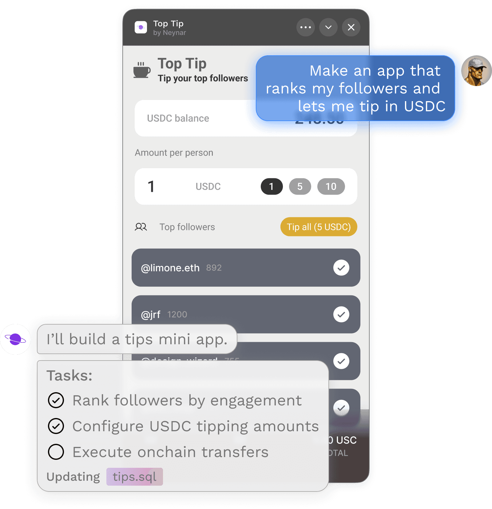 Access Farcaster profiles, feeds, followers, and social context natively.
